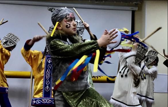 在學(xué)校內(nèi)的一間小型演播室,穿著那乃族演出服裝的小演員們表演了許多節(jié)目。