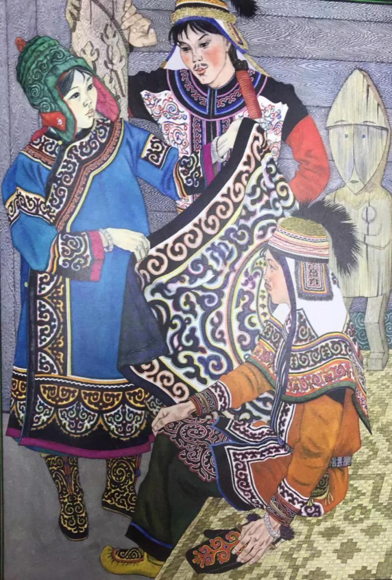 那乃族的插畫(huà),有的用細(xì)膩的繪畫(huà)語(yǔ)言真實(shí)再現(xiàn)了那乃族的生活場(chǎng)景,有的用生動(dòng)形象的裝飾語(yǔ)言表現(xiàn)了那乃族的傳說(shuō)故事。