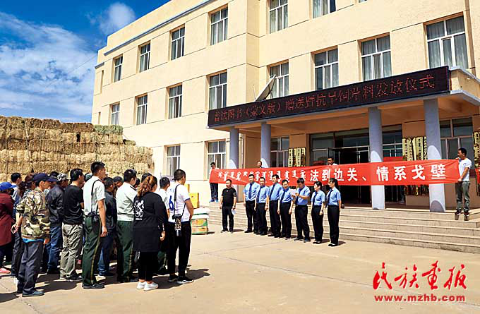 阿拉善盟檢察分院的“法到邊關(guān)、情系戈壁”《普法宣傳教育叢書(蒙古文)》贈送暨抗旱救災(zāi)飼草料發(fā)放儀式。