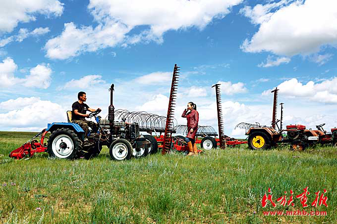 錫林郭勒盟草業(yè)合作社利用興邊富民行動資金購買打草機(jī)等設(shè)備。