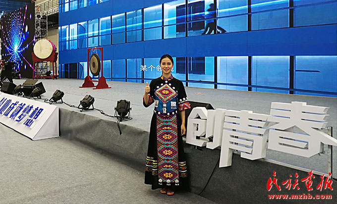 鐘億靈在“創(chuàng)青春”中國青年創(chuàng)新創(chuàng)業(yè)大賽中為嘉賓做項目講解。