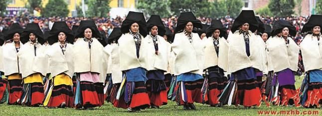 在農耕文化盛行的地區(qū),如大渡河河谷地帶的四川嘉絨藏族婦女,則喜歡穿百褶裙和圍腰,戴精美的刺繡瓦狀帕;云南省迪慶藏族自治州金沙江河谷的藏族聚居地區(qū),因氣候溫暖,婦女則喜歡穿絲綢質地的百褶裙。