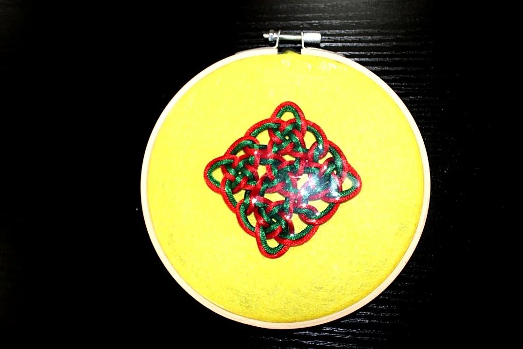 首先要選定編結(jié)材料,設(shè)計好色彩方案,用的線材可以是多種,根據(jù)需要進行顏色搭配。編完之后,要將結(jié)子抽緊定形,這是整個編結(jié)過程中最重要也最考驗技術(shù)的步驟。繩結(jié)在編好、抽好之后,修的工夫也不能馬虎,而注重細節(jié)。