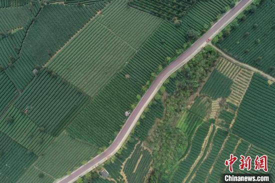 航拍貴州湄潭境內的茶園?!■暮陚?攝