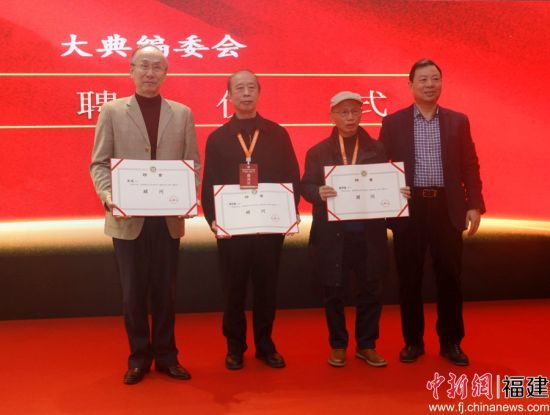 在當(dāng)天的開幕式活動上,還舉行了表彰和敦聘儀式。劉孫建代表文經(jīng)書院和大典編委會,向經(jīng)抄團(tuán)隊書家代表沈亮光、陳若航頒發(fā)榮譽(yù)證書,同時禮聘董克儉、劉蕻擔(dān)任副院長,岳峰、楊志英和福建省文聯(lián)原黨組書記陳濟(jì)謀等擔(dān)任大典編委會顧問。(完)