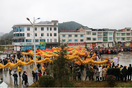 2019年2月16日農(nóng)歷正月十二是瓦寨鎮(zhèn)傳統(tǒng)大型集會活動日,舞龍為主要活動之一。午飯后,來自全縣各地的舞龍舞獅隊、花燈隊陸續(xù)到瓦寨政府廣場集結,并在廣場右側有序排隊等待,各隊隊員精神抖擻、神采飛揚、迫不及待。前來參觀元宵舞龍的群眾和游客也不斷涌向廣場,大街小巷行人猶如潮涌,吆喝聲、歡笑聲、鑼鼓聲連綿不斷……下午五時許,活動在瓦寨鎮(zhèn)政府廣場正式開始,先是由鎮(zhèn)領導對脫貧攻堅各項惠民政策及5年來瓦寨取得的攻堅戰(zhàn)績進行宣講,宣講慳鏘有力、扣人心弦,特別是5年來瓦寨取得的攻堅戰(zhàn)績,一致得到人民群眾好評和認可。隨后,舞龍、舞獅、花燈表演紛紛上演,只見黃龍時而上下翻騰,時而昂首擺尾,雄獅時而就地打滾,時而賣萌撒嬌,樣子憨態(tài)可掬,花燈表演幽默滑稽,在前行中跑出各種套路,起伏波動、生動活潑,吸引了所有人的目光,贏得了陣陣喝彩……