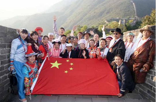 2017年全國(guó)少數(shù)民族參觀團(tuán)的各族代表參觀慕田峪長(zhǎng)城。(民族畫(huà)報(bào)記者 娘吉加 攝影)
