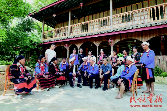 身著德昂族服裝的尹新勇今天要接待一批云南大學暑期社會實踐的師生,特意穿上了一身德昂族民族服裝?!拔沂菨h族,但是為了讓客人們感受德昂族文化,帶動三臺山旅游,我也常常會穿起民族服裝的?!币掠抡f。