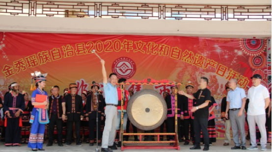 “擊鑼開市”“山歌傳情”“瑤醫(yī)問(wèn)診”“吃樹葉豆腐”“跳黃泥鼓舞”,6月13日,廣西來(lái)賓市金秀瑤族自治縣2020年“文化和自然遺產(chǎn)日”——“非遺集市”活動(dòng)在羅香鄉(xiāng)橫村瑤寨拉開序幕。廣西壯族自治區(qū)非物質(zhì)文化遺產(chǎn)保護(hù)中心書記朱鳳立、金秀瑤族自治縣人民政府副縣長(zhǎng)馬峰為“非遺”集市“擊鑼開市”。