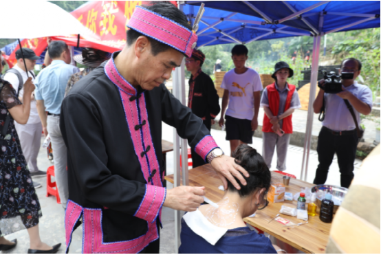 本次活動(dòng)以2020年“文化和自然遺產(chǎn)日”的“非遺傳承,健康生活”為主題,重點(diǎn)圍繞傳統(tǒng)醫(yī)藥項(xiàng)目保護(hù),普及“非遺”知識(shí)和健康生活理念,營(yíng)造全社會(huì)共同參與、關(guān)注和保護(hù)傳承優(yōu)秀傳統(tǒng)文化濃厚氛圍而開展。邀請(qǐng)十位瑤醫(yī)藥傳承人帶領(lǐng)40多位瑤醫(yī)弟子各顯神通,在現(xiàn)場(chǎng)開展非遺項(xiàng)目義診活動(dòng),為游客免費(fèi)問(wèn)疹,展示泡藥療法、針灸療法、燈草療法、坐浴療法、拉伽通灸療法等10種技法?,幷锩恳粦羧思夷贸瞿檬纸^活在自家進(jìn)行現(xiàn)場(chǎng)展示,黃泥鼓制作、樹葉豆腐制作、瑤族織繡技藝、釀酒技藝、舂糍粑、原創(chuàng)歌曲展示等,豐富多彩的各種技藝,讓游客流連忘返。