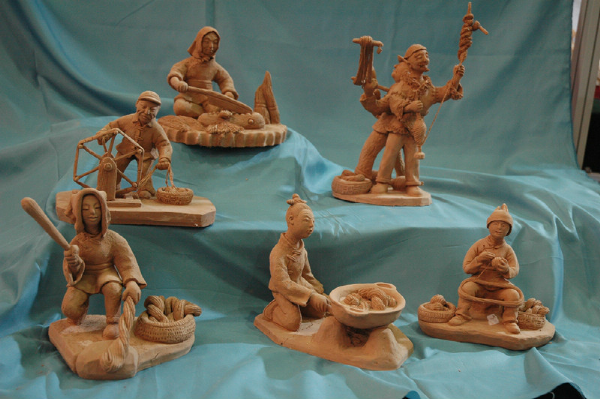 泥塑藝術(shù)是我國一種古老常見的民間藝術(shù)。它以泥土為原料,以手工捏制成形,或素或彩,以人物、動物為主。不同的民間風(fēng)俗,流傳著很多動人的傳說故事,這些構(gòu)成了泥塑藝術(shù)的精神內(nèi)核。民間泥塑的用途主要有祈子延壽、納福招財、驅(qū)邪避災(zāi)和裝飾擺設(shè)等。泥塑成本低,費(fèi)工少,是老百姓喜聞樂見的藝術(shù)表現(xiàn)形式,它往往和節(jié)令、禮儀、風(fēng)俗聯(lián)系在一起,反映的是當(dāng)?shù)剞r(nóng)村人們?nèi)粘I畹牟煌瑘鼍?,人物栩栩如生,場景鮮活生動。