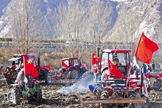 “現(xiàn)在國(guó)家大力支持農(nóng)業(yè)發(fā)展,不斷推進(jìn)農(nóng)業(yè)機(jī)械化,我們不僅不用自己耕地,而且效率和產(chǎn)量都提高了很多,我們家富余的勞動(dòng)力外出就業(yè),一家人的生活也越過越好啦?!眳f(xié)榮村村民索朗曲培說。