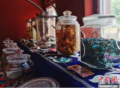 圖為唐卡繪畫礦物顏料展示?!?zhí)砀?攝