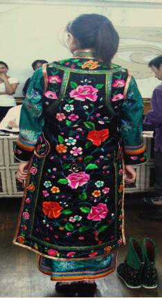 蒙古族科爾沁部的服飾,是內(nèi)蒙古自治區(qū)東部地區(qū)比較有代表性的蒙古族服飾,以用料講究、款式多變,色彩和諧,工藝復雜見長。科爾沁草原上的刺繡,早年的時候,是比較簡單的,后來工藝流程才變得復雜起來,包括設(shè)計繡稿、勾稿、染線,上棚,配線,刺繡,下棚等若干步驟,其做工細膩,講究針法和紋路,每一件繡品都精益求精,一絲不茍,出來的繡品堪稱精品佳作。蒙古族刺繡的針法包括9大類40多種,有齊針、散針、稀針、接針、打籽、退暈等刺繡針法。