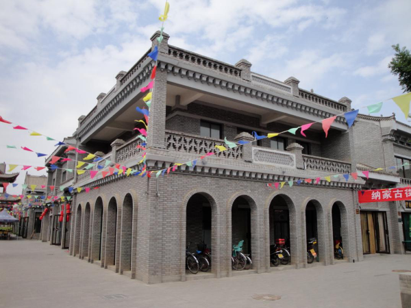 中華回鄉(xiāng)第一街位于永寧縣納家戶北側。該項目以納家戶清真大寺為中心擴展門前廣場,以廣場為中心向北,直北長380米,東西寬107米,占地面積93.78畝,建筑面積1.6萬平方米,建成商鋪177套。所有建筑遵循當?shù)鼗刈宓慕ㄖL格,采用青磚砌筑,尤其在細節(jié)處理上用符號、色調與裝飾來表現(xiàn)回族建筑的精髓。雕梁畫棟,飛檐四出,并且在墻壁、牌坊、檐口、山墻等處運用了大量磚雕、伊斯蘭花飾等將伊斯蘭文化藝術與中國傳統(tǒng)建筑風格有機的結合在一起,為景區(qū)增加了濃郁的歷史文化氛圍。該街道由北向南依次分為土特產區(qū)、民俗文化區(qū)、旅游紀念區(qū)、餐飲區(qū)、配套商業(yè)區(qū)五大功能區(qū)。