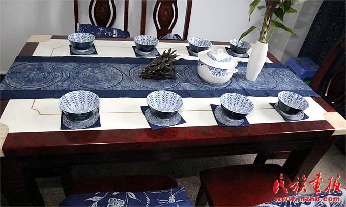 楊文斌老師和她的夫人梁定芳老師都是“非遺”傳承人?,F(xiàn)在他們忙著著書、講學(xué)、開研討會(huì)。談起蠟染、談起民族民間工藝,楊文斌老師滔滔不絕:“現(xiàn)在要從三個(gè)方面認(rèn)識(shí)和研究民族民間工藝:一是從歷史學(xué)、人類學(xué)、民族學(xué)的角度解讀,二是從審美學(xué)、藝術(shù)視覺理念的角度解讀,三是從工藝學(xué)、材料學(xué)、技藝學(xué)的角度解讀。現(xiàn)在植物染料的加工和染色技藝消失得很快。老祖宗留下的寶貝到我們這代可不能扭曲和斷裂?!?/p>