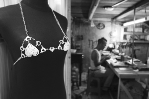 “銀飾胸罩”重約200克。據(jù)龍?zhí)柦榻B,他打制“銀飾胸罩”源于對妻子的愛。妻子長期在田間勞作,夏季汗水貼著內(nèi)衣,悶熱難受。于是,龍?zhí)枦Q定給老婆打制一件精致、涼爽的“銀飾胸罩”。這件耗時33天制成的“銀飾胸罩”,是用發(fā)絲般纖細的銀絲制成的,穿著舒適涼爽。