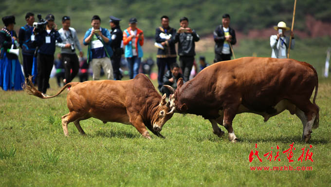 在力量與勇氣展示項(xiàng)目中,最激烈的賽事當(dāng)數(shù)斗牛、斗羊,兩頭斗志昂揚(yáng)的公牛在草地上激烈地用牛角頂著對方,發(fā)出響亮的牛角撞擊聲。斗羊場的激烈在于,兩只公羊在相互頂撞前,往往后退十幾米,方便加速,增加頂撞時的力量,羊角碰撞的聲音清脆響亮,久久回蕩在賽場上空。圍觀的人們里三層外三層地圍著,緊緊跟著對壘中的牛羊一起移動,跑著跳著在一旁高聲吶喊。