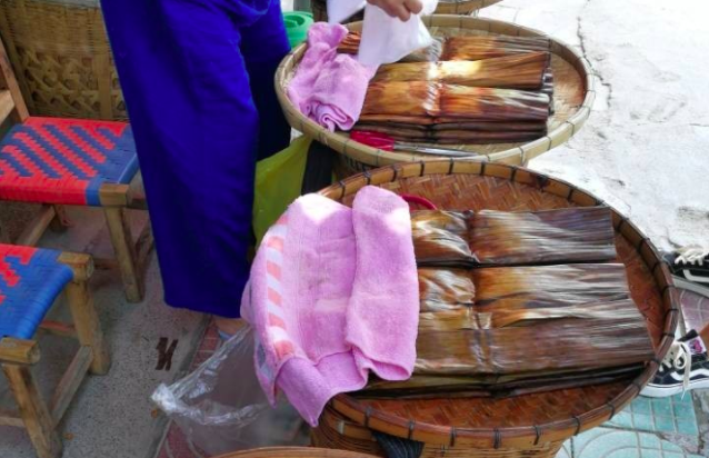 褡褳粑是布依族人民喜愛的傳統(tǒng)食品,因其如褡褳袋而得名。每逢農(nóng)歷七月十五日(中元節(jié)),布衣族人民均普遍制作褡褳粑,作為祭祀祖先的供品。相傳兩千多年前,祭祖是用當(dāng)?shù)厥a(chǎn)的芭蕉果和普通糍粑,后來發(fā)展為用芭蕉和糯米蒸熟,加上紅糖,制成甜味糍粑。又經(jīng)過多次改進(jìn)才形成現(xiàn)在的褡褳粑。如今,除七月十五日以外,逢年過節(jié),宴客,走親訪友,也要制作褡褳粑。蒸熟后的褡褳粑呈長方形,色澤醬黃,香甜細(xì)膩,具有芭蕉果和芭蕉葉的特殊香味。熱吃軟滑細(xì)膩,冷吃清涼甜潤,烙食香脆。