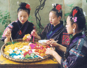 侗族分布于貴州、湖南、廣西三省毗鄰地區(qū)的南方少數(shù)民族,居住在黔、湘、桂等省區(qū)的毗連地區(qū),其中以貴州省人口最多。古代文獻(xiàn)中稱“駱越”、“僚”、“侗蠻”。他們主要從事山壩農(nóng)業(yè),兼營(yíng)林業(yè)和漁獵,手工業(yè)發(fā)達(dá)。出產(chǎn)“香禾糯”(有“糯中之王”之稱)、“稻花鯉”、油茶。
