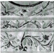 侗族刺繡工藝流行于湘、桂、黔三省交界處的侗族聚居區(qū)。圖案紋樣多取材于自然景物,如花、鳥(niǎo)、魚(yú)、蟲(chóng)之類(lèi)。畫(huà)面生動(dòng)活潑,色彩明麗。
