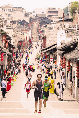 此次活動(dòng)最大的亮點(diǎn)是傳統(tǒng)古老的“非遺”文化和劃騎跑三項(xiàng)挑戰(zhàn)賽緊密結(jié)合,充分利用黎平生態(tài)資源設(shè)置比賽線路。比賽全程131.5公里,途經(jīng)德鳳、高屯、巖洞、茅貢、壩寨等5個(gè)鄉(xiāng)鎮(zhèn)(街道)。兩天時(shí)間內(nèi),選手們穿行在黎平最亮麗的精品旅游示范區(qū)域——“百里侗寨”文化體驗(yàn)走廊,穿越古木參天的森林,探秘古樸神奇的侗寨,感受清新秀麗的茶園,經(jīng)過(guò)滿載美妙愛(ài)情故事的風(fēng)雨橋,逐浪于綠如翡翠的三什江,奔跑在侗家如詩(shī)如畫(huà)的田野間,路過(guò)桂花臺(tái)、五里橋、東風(fēng)林場(chǎng)等多個(gè)著名景點(diǎn),在侗鄉(xiāng)黎平的多情山水和旖旎風(fēng)光中追尋健康、快樂(lè)。身著民族服裝的侗族姑娘、小伙兒,在賽事最精彩的發(fā)令、節(jié)點(diǎn)交接、終點(diǎn)沖刺階段各個(gè)環(huán)節(jié)都唱起侗族大歌助興,“掠過(guò)古夢(mèng)邊緣的旋律”讓這項(xiàng)國(guó)際性的現(xiàn)代化賽事洋溢著濃濃的“中國(guó)風(fēng)”。