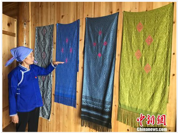 粟田梅說,在過去,當?shù)厝丝棾龅囊黄テザ卞\多用于日常穿戴,且品種比較單一,并未進入市場流通。加之農村青壯年不斷外出務工,侗錦曾一度面臨無人傳承的窘境。
