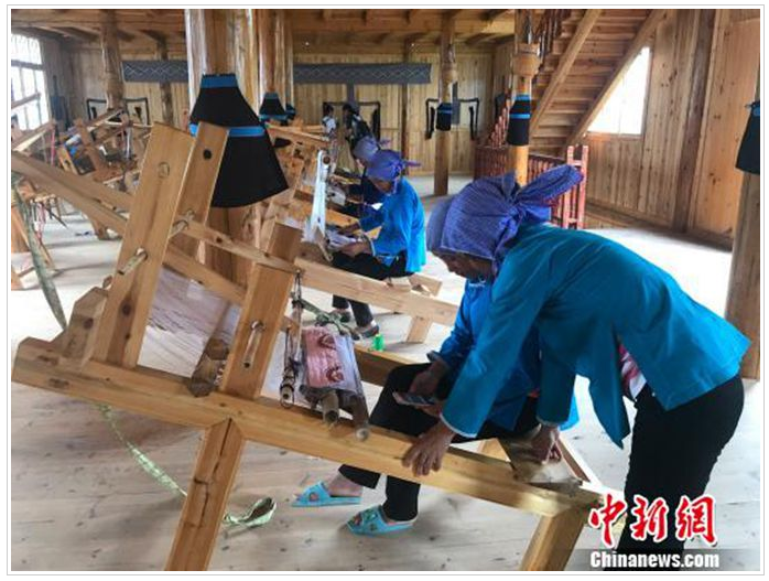 織娘們在“中國侗錦傳承基地”互相交流、切磋技藝 (傅煜 攝影)