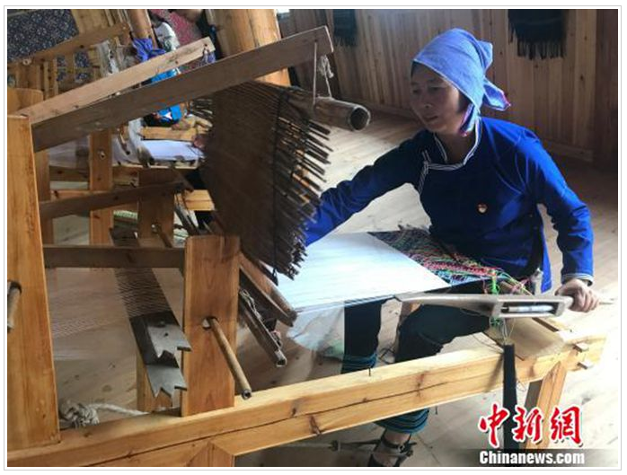 聽聞姐姐在這里織錦每月可拿到3000多元的收入,今年7月,此前在廣東務工的文坡村二組村民龍練霞干起了這份家門口的工作,再也不想外出了?!凹确奖阏疹櫦胰耍挚梢猿榭崭牲c農事。”今年30多歲的龍練霞說。和她一樣,看到侗錦的銷路慢慢打開了,村里許多在外務工的年輕人也紛紛返鄉(xiāng),拾起祖輩們的老手藝。