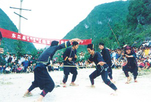 日前,廣西大化瑤族自治縣七百弄鄉(xiāng)和東蘭縣三弄瑤族鄉(xiāng)的布努瑤同胞分別舉行隆重的活動,慶祝自己的民族傳統(tǒng)節(jié)日“祝著節(jié)”?!白V?jié)”,亦稱祖娘節(jié)、二九節(jié)、盤古節(jié)或瑤年,是瑤族人民隆重的節(jié)日之一。這天,布努瑤同胞表演了一臺臺古色古香的文藝節(jié)目。當(dāng)?shù)馗髯迦罕姾团忇l(xiāng)鎮(zhèn)的農(nóng)民朋友也匯集一堂,和布努瑤兄弟姐妹一道慶賀這個(gè)盛大的民族節(jié)日。
