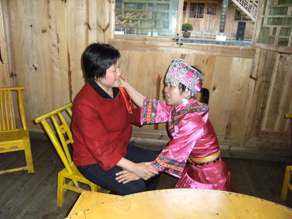 哭嫁歌內(nèi)容有“母女對(duì)哭”“嫂妹對(duì)哭”“姐妹對(duì)哭”“哭離娘席”“哭別祖宗”“哭兄弟”“哭梳頭”“罵媒人”“哭上轎”等,甚至還有同村同齡未婚姑娘的群哭——“哭十姊妹”。哭嫁歌源于土家族姑娘出嫁前的哭嫁之俗,越是臨近婚期,哭聲越悲,甚至通宵達(dá)旦。2010年,“土家族哭嫁歌”已被列入第三批國(guó)家級(jí)非物質(zhì)文化遺產(chǎn)名錄。