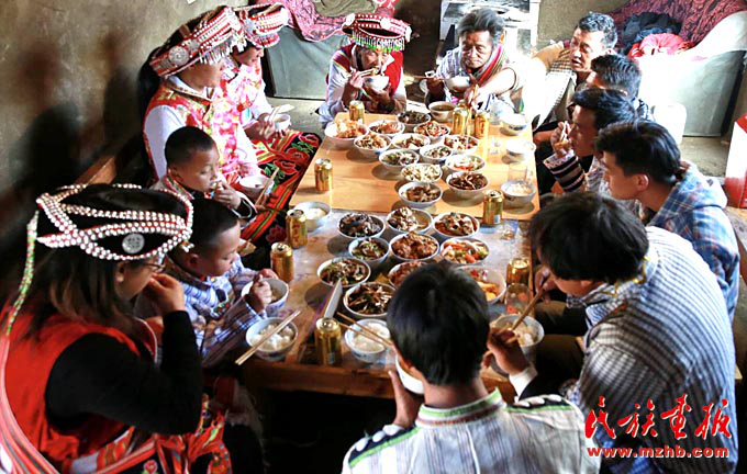 “過去我們一家吃除夕團圓飯,有點肉就不錯了,哪會有如此豐盛的宴席。你看如今這滿桌子十幾道菜,吃不完、喝不完,全靠黨和國家的政策好啊?!痹谡劦酱汗?jié)的變化時,云南省維西傈僳族自治縣保和鎮(zhèn)臘八底村的蜂大興深有體會。