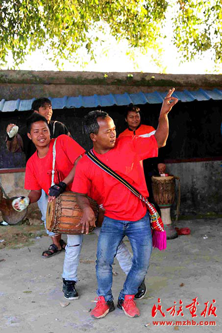 沿著曲折的山路開車一個多小時,記者來到西盟縣秧洛村一組,恰巧碰到了一對新人喜結良緣。清脆的木鼓聲在大山里回蕩,秧洛村的村民喝喜酒、跳木鼓舞。
