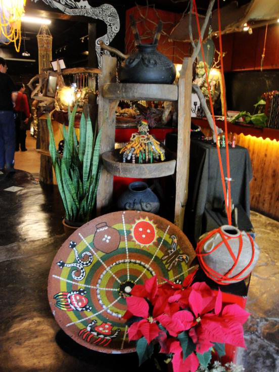 雕刻。高山族的雕刻以木雕和石雕為主,金屬雕刻是現(xiàn)代才出現(xiàn)的。排灣和魯凱兩個(gè)族群的雕刻工藝最為發(fā)達(dá),也最具特色。木板雕刻的紋樣與石壁雕刻大致相似,只是木板雕刻多施色彩,少則紅、白兩種色,多則加上黃、橙、藍(lán)、綠色不等,鮮艷亮麗,引人注目。一般住屋內(nèi)外都有雕刻,貴族的住屋裝飾尤其突出。立柱和壁板雕刻的主題多為敘述家族神話、傳說(shuō)起源或表彰家族的特殊事跡。雕刻的題材以神話傳說(shuō)、狩獵生活、祖靈像為主;木雕以人像、人頭、蛇紋、野豬和鹿紋為主;其他還有重圓紋、太陽(yáng)紋、網(wǎng)形、風(fēng)車形,四葉形、人體生殖器等等。這些題材與排灣人的原始宗教、神話內(nèi)容有密切的關(guān)聯(lián)。住屋的木雕取材于質(zhì)地堅(jiān)硬的樟木、臺(tái)灣櫸、二葉松等喬木,而木桶、木臼、木椅等器物,除了堅(jiān)硬木材外,也選擇樟木,烏心石等。至于木匙、煙斗、木梳則喜歡用月橘之類的材質(zhì)。