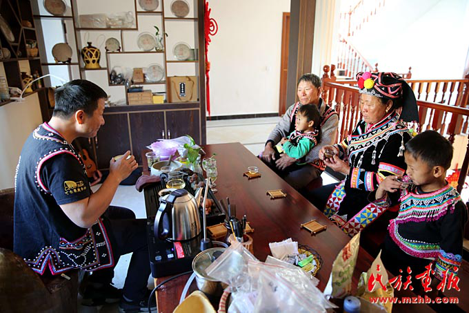一家人坐在6米高的客廳里看著高清電視節(jié)目,偶爾圍坐在一起品味著來自景邁山的古樹茶,張俊波的臉上滿是幸福。他說:“拉祜族是快樂民族,我們喜歡用歌聲和舞蹈表達(dá)快樂的心情。這種發(fā)自內(nèi)心、難以言表的快樂是黨和國家長期關(guān)懷我們西南邊疆少數(shù)民族才能實(shí)現(xiàn)的?!?/p>