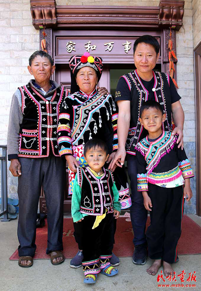 “沒有共產(chǎn)黨,這些想都不敢想?!睂?duì)于張俊波的父親這一代人而言,黨和國家對(duì)“直過民族”的好政策所帶來的變化就是他們自己親身經(jīng)歷的。從茅草房、土坯房、磚瓦房到別墅式的小洋樓,61歲的他已經(jīng)四次搬家了。“這都是黨和國家的政策好,我已經(jīng)很知足了。”張俊波的父親滿臉都是滿足的表情。