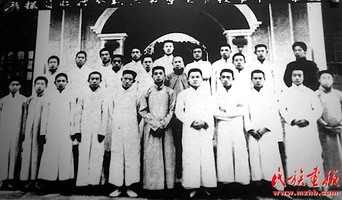 山東省立第一中學第三期全體學生會職員合影,前排右四為鄧恩銘