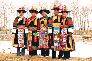 隨著時代的更替,土族女性的服飾發(fā)生了很大變化,有的傳統(tǒng)服飾已消失,有的服飾經(jīng)過推陳出新,重放光彩。如舊時的繡花高領,如今變成直翻兩用領;蓋在“扭達”上的長頭巾——“扭達爾秀巾”,變成了今日土族女性使用的短頭巾?,F(xiàn)今,廣大土族女性,不僅喜穿本民族服飾,而且還愛著時尚服飾,她們或使土族服飾時裝化,或使時裝土族服飾化,豐富了土族的服飾文化。