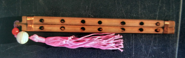 羌笛是一種吹管樂(lè)器,歷史悠久。羌笛至今已有兩千余年歷史。據(jù)史載,西漢前,羌笛面上有四孔,公元一世紀(jì)由京房加一高音按孔,為五孔。東漢馬融在《長(zhǎng)笛賦》就曾有“近世雙笛從羌起”的記述,唐代亦有“羌笛何須怨楊柳”的名句。發(fā)展到近代羌笛已成六孔。2006年5月“羌笛演奏及制作技藝”被列入《第一批國(guó)家級(jí)非物質(zhì)文化遺產(chǎn)目錄》。羌笛在羌語(yǔ)中稱為“其篥”“士布里”或是“幫”,是一種古老的民間豎吹樂(lè)器。它由兩根長(zhǎng)約15—20厘米,直徑1厘米左右,筒孔大小一致的竹管并在一起,用絲線纏繞,管頭插著竹簧。管身竹制或骨制,由發(fā)音簧哨和方筒形管體組成。兩管長(zhǎng)短、孔距和音高相同。管上設(shè)五個(gè)或六個(gè)按孔。演奏時(shí),雙手持笛,將簧哨含入口內(nèi),用特殊的“鼓腮換氣法”吹奏,指法與笛相同。制作羌笛一般選用箭竹,并根據(jù)筒管的長(zhǎng)短、厚薄及筒管大小測(cè)定音準(zhǔn),孔距必須精確相等,否則音準(zhǔn)不一。