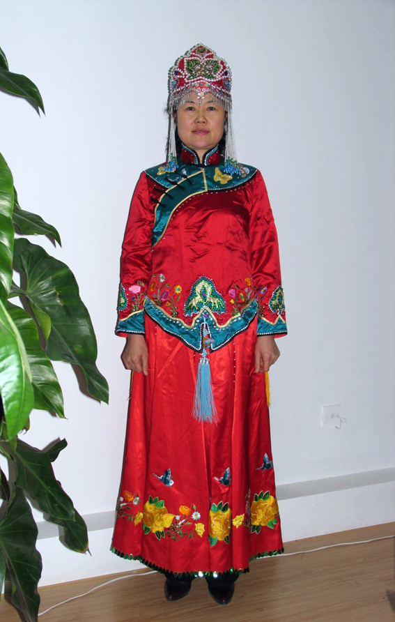 剛出嫁的女子的服飾要比少女的服飾更加艷麗,并且梳理的發(fā)型也會(huì)有所差異,媳婦梳的是“盤龍髻”,額前有“劉?!保X后有“燕尾”,頭頂上烏發(fā)蓬起,盤成髻形,日常生活中將辮梳成雙辮或兩“抓髻”,合起成為一個(gè)大“疙瘩髻”。頭發(fā)抹頭油,沒(méi)有頭油的,用榆樹(shù)皮泡的水也粘稠光亮。面部可以涂粉,口可以涂口紅,可以染指甲等。頭部髻上插著金簪,腕上佩帶金(銀、玉)手鐲。錫伯族已婚婦女一般都會(huì)穿戴耳環(huán)、手鐲、戒指等裝飾品。此外,錫伯人喜愛(ài)在褲子小腿處扎系黑色的綁腿帶子。綁腿帶視年齡也會(huì)有所不同,未出嫁的女子一般扎系紅色、粉紅色腿帶,而在舉行葬禮儀式時(shí)扎系白色的綁腿帶子。