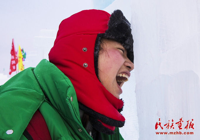 南方的游客第一次看到那么美的雪、那么厚的冰,激動地想咬一口(武倩 攝影)