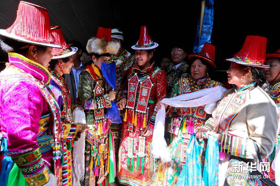 從那以后,裕固族姑娘出嫁就借用這頂“吐魯格排爾克”成親配對,不管春夏秋冬結(jié)婚,新娘提前三天就要戴在頭上。一直到現(xiàn)在,還保留著這個習(xí)俗。