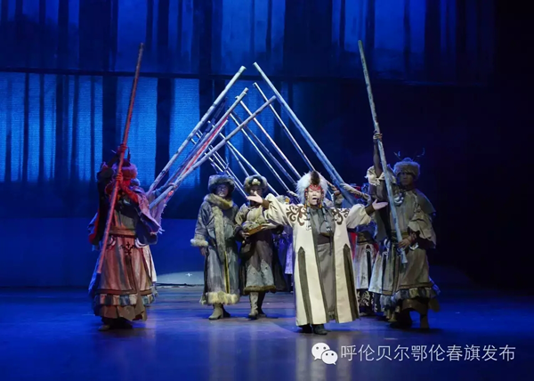 《勇敢的鄂倫春》,由烏蘭托嘎?lián)嗡囆g(shù)總監(jiān),塞納為編劇,三虎、丹德爾(俄羅斯)、吳莽三人出任總導(dǎo)演;全體演職人員63人,由鄂倫春自治旗烏蘭牧騎專業(yè)人員和15名群眾演員組成,其中鄂倫春族藝術(shù)家曲云、白娟為國家一級(jí)演員,鄂倫春族群眾演員來自獵民村與相關(guān)城鎮(zhèn),演員隊(duì)伍中年齡最大的71歲,最小的7歲。演出團(tuán)隊(duì)中鄂倫春族演員占到了接近一半?!队赂业亩鮽惔骸芬远鮽惔好褡濯?dú)有的狩獵文化為主線,詩意地講述了狩獵生活的全過程,生動(dòng)鮮活地展示了鄂倫春民族勇敢、細(xì)膩的民族精神和性格特征。該劇還采用了高于原生態(tài)表現(xiàn)手段的唯美手法,將古樸的民族傳統(tǒng)文化與現(xiàn)代藝術(shù)元素巧妙地結(jié)合在一起,既尊重了民風(fēng)民俗,又符合當(dāng)代人的欣賞趨向,煥發(fā)著動(dòng)人心魂的強(qiáng)大魅力。