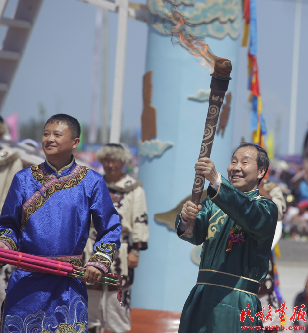 赫哲族“烏日貢”節(jié)在黑龍江同江市舉行。國家民委專職委員葛忠興(赫哲族)點(diǎn)燃象征火炬的圣香,開啟了今年的節(jié)日活動