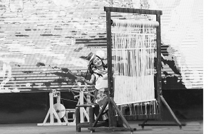 藏毯展會(huì)上,演員藝術(shù)地表現(xiàn)了藏毯傳統(tǒng)編織技藝。賈海元攝