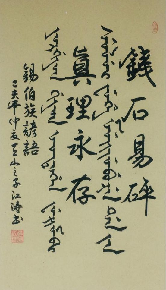 錫伯文書(shū)法:錢石易碎,真理永存