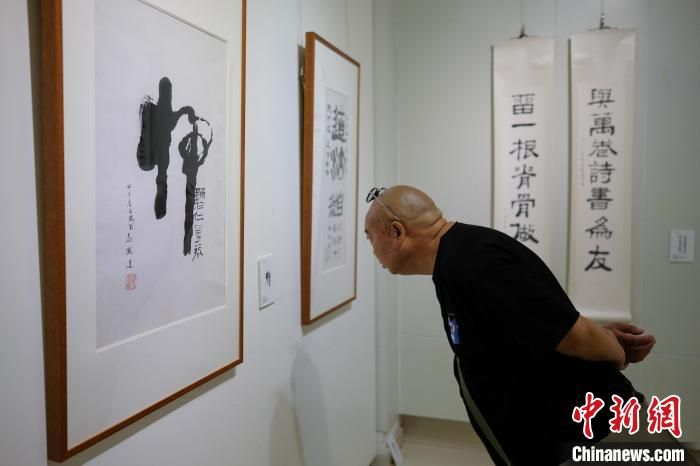 圖為觀眾參觀書(shū)法展?!『闻罾?攝
