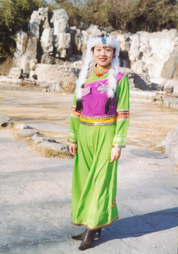 女服外套以短矮圓領(lǐng)右衽式長(zhǎng)袍為主,禮儀場(chǎng)合在長(zhǎng)袍上著綢緞坎肩。新疆塔城地區(qū)的達(dá)斡爾族婦女因受當(dāng)?shù)貗D女服飾習(xí)慣的影響,喜愛穿用淡紅和綠色的服飾。海拉爾地區(qū)的達(dá)斡爾族婦女所穿的夏季袍為立領(lǐng),袍身上窄下寬,長(zhǎng)至腳面,下擺無(wú)衩,右衽布排扣至膝以下,類似蒙古袍。