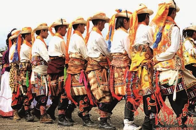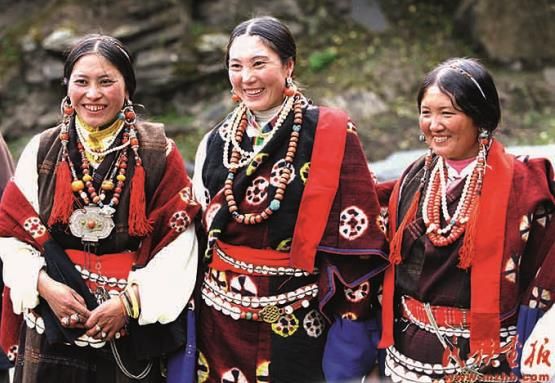 在農耕文化盛行的地區(qū),如大渡河河谷地帶的四川嘉絨藏族婦女,則喜歡穿百褶裙和圍腰,戴精美的刺繡瓦狀帕;云南省迪慶藏族自治州金沙江河谷的藏族聚居地區(qū),因氣候溫暖,婦女則喜歡穿絲綢質地的百褶裙。