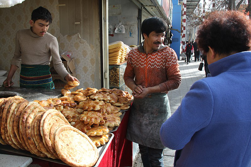 他的話里有著對這座城市的感情。雖然工作很累,但他們有很多朋友?!斑@里有很多上大學的維吾爾族大學生,還有在這里做小生意的人,也有回族和漢族朋友?!辟I麥提·沙烏提和阿吉拇提都沒有結婚,但他們都打算把未來的妻子帶到這里,像他們的老板一樣,在這座城市安家。買麥提·沙烏提沒有去過其他大城市,但他有一個理想:結婚時,帶著妻子到上海、廣州、北京等大城市走一圈。再干一年,他準備自己開個店當老板。